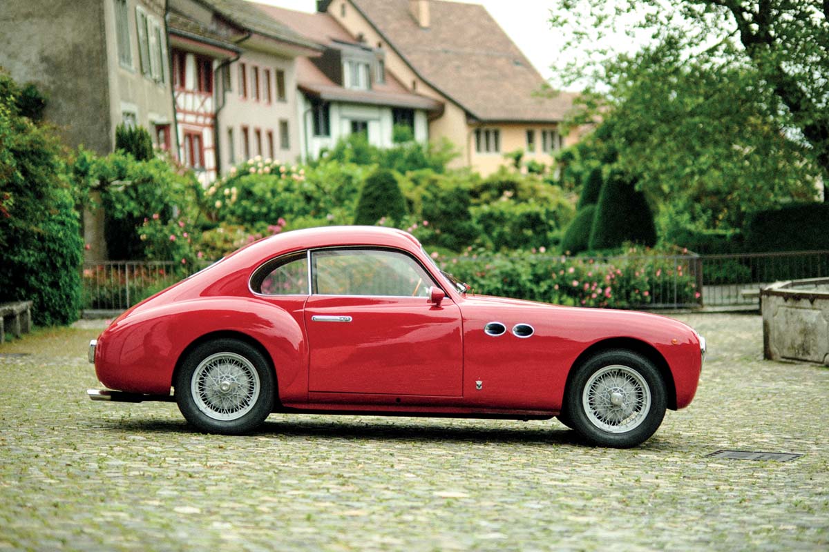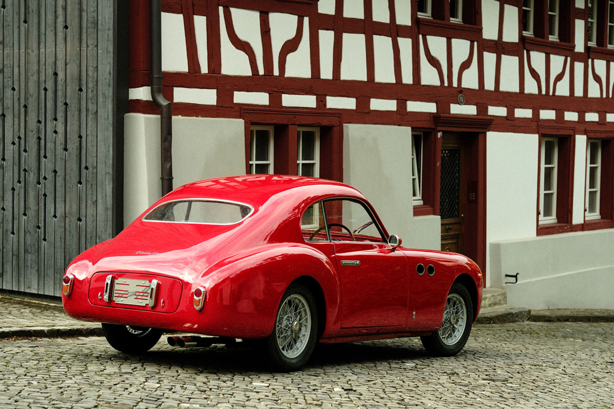 Sei es drum. Gedankenspiele im Konjunktiv bringen uns nicht weiter. Widmen wir uns dem Cisitalia 202 Gran Sport, der heute für eine Ausfahrt bereitsteht. Der hochgezüchtete Motor lässt sich ein paar Mal bitten, bevor er mit höllischem Gebrüll zum Leben erwacht. Vorsichtig fährt Rowland Di Marzio den Wagen warm. Er hat das Coupé gerade für einen Schweizer Sammler restauriert. Wir machen uns auf nach Regensberg, unserem Fotospot. Schon auf den ersten Metern wird klar, dass dieses Auto dem Rennsport entsprungen ist. Die elegante Karosserie mag auf den ersten Blick darüber hinwegtäuschen, aber der Cisitalia ist kein GT, sondern ein kompromissloser Sportwagen – laut und fordernd. Erdacht von zwei der besten Ingenieure ihrer Zeit, von Dante Giacosa und Giovanni Savonuzzi.