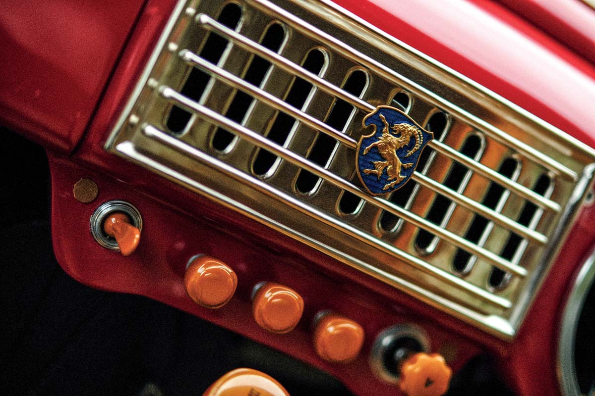 Auch die Karosserie wurde sorgfältig aufbereitet. Die Lackierung, welche auf die erste Restauration zurückgeht, wurde angeschliffen und aufpoliert. Dazu hat Rowland auf Spezialisten in seinem Netzwerk zurückgegriffen und den Prozess eng begleitet. Apropos Karosserie – während der Restauration hat Rowland herausgefunden, dass diese nicht von Pinin Farina, sondern von Stabilimenti Farina hergestellt worden war. Dabei handelt es sich um das Unternehmen von Giovanni Carlo Farina, dem älteren Bruder von Battista «Pinin» Farina. Entsprechend hat Rowland das irgendwann angebrachte irreführende Pinin-Farina-Logo an der Flanke durch ein korrektes Stabilamenti-Farina-Logo ersetzt.